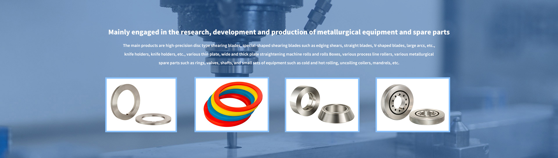 The main products are high-precision disc type shearing blades, special-shaped shearing blades such as edging shears, straight blades, V-shaped blades, large arcs, etc., knife holders, knife holders, etc., various thin plate, wide and thick plate straightening machine rolls and rolls Boxes, various process line rollers, various metallurgical spare parts such as rings, valves, shafts, and small sets of equipment such as cold and hot rolling, uncoiling coilers, mandrels, etc.